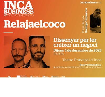 El XIV cicle d'IncaBusiness duu a Mallorca el disseny estratègic de Relajaelcoco. El pròxim 4 de desembre, a les 19.30 h, el Teatre Principal d’Inca acollirà la inauguració del XIV Cicle d'Inca Business, que enguany serà a càrrec de l'estudi de disseny Relajaelcoco. L'estudi madrileny oferirà una conferència titulada “Dissenyar per a fer créixer un negoci”. La seva visió està enfocada en el disseny estratègic i dinàmic per a la creació d'identitats visuals impactants i solucions per a marques compromeses.